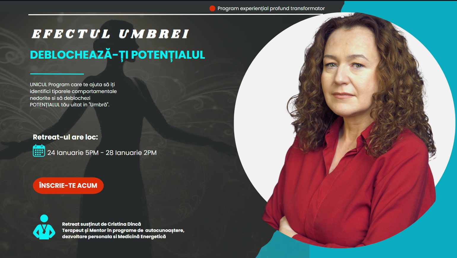 Un parcurs gradual de 5 zile în care te desprinzi cu recunoștință de programele moștenite din familie sau din generațiile anterioare și alegi să devii creatorul vieții tale. Implicarea și consecvența ta pe parcursul programului iți garantează PUTEREA și ÎNȚELEPCIUNEA de a fi CREATORUL VIEȚII TALE!